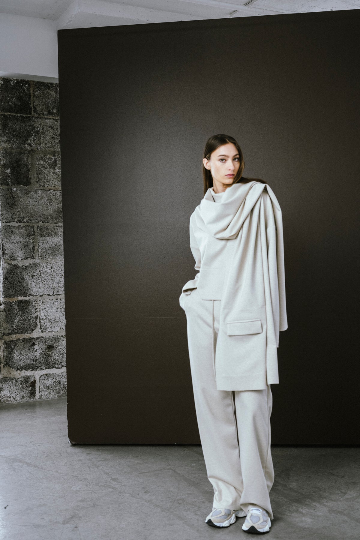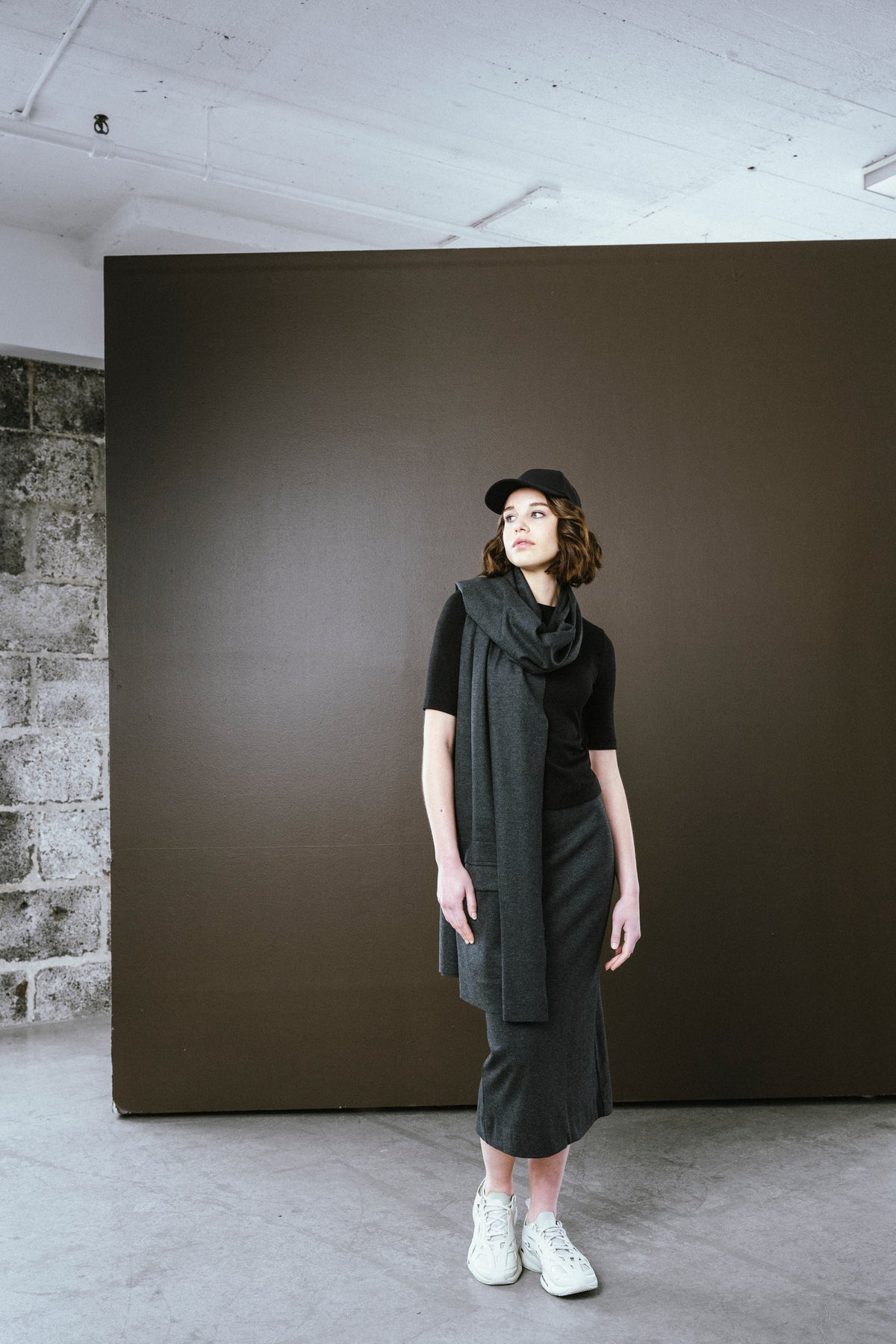 A bold, functional layer, this oversized scarf brings thoughtful design to winter styling.