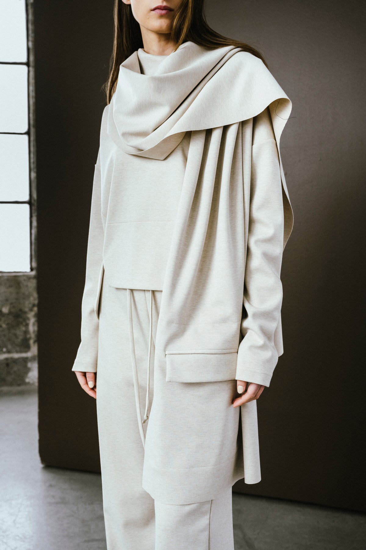 Crafted from a soft, structured fabric with a subtle stretch, it offers a generous width and length for effortless drape.
