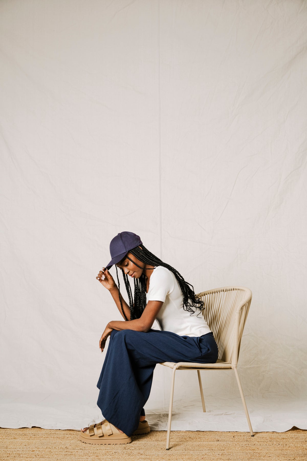Confectionné dans un mélange Bizet de viscose et de lin, ce tissu est doux, aérien et légèrement texturé. Son tombé est fluide et stable, offrant une structure discrète aussi bien en noir qu'en bleu marine.