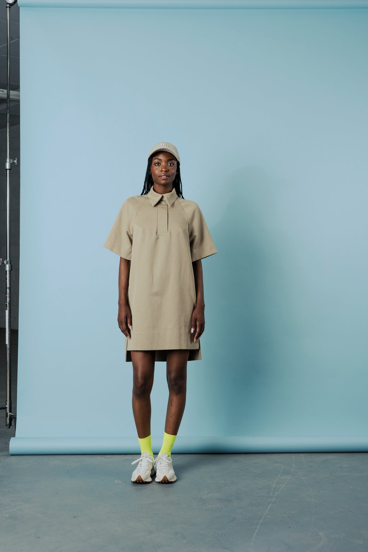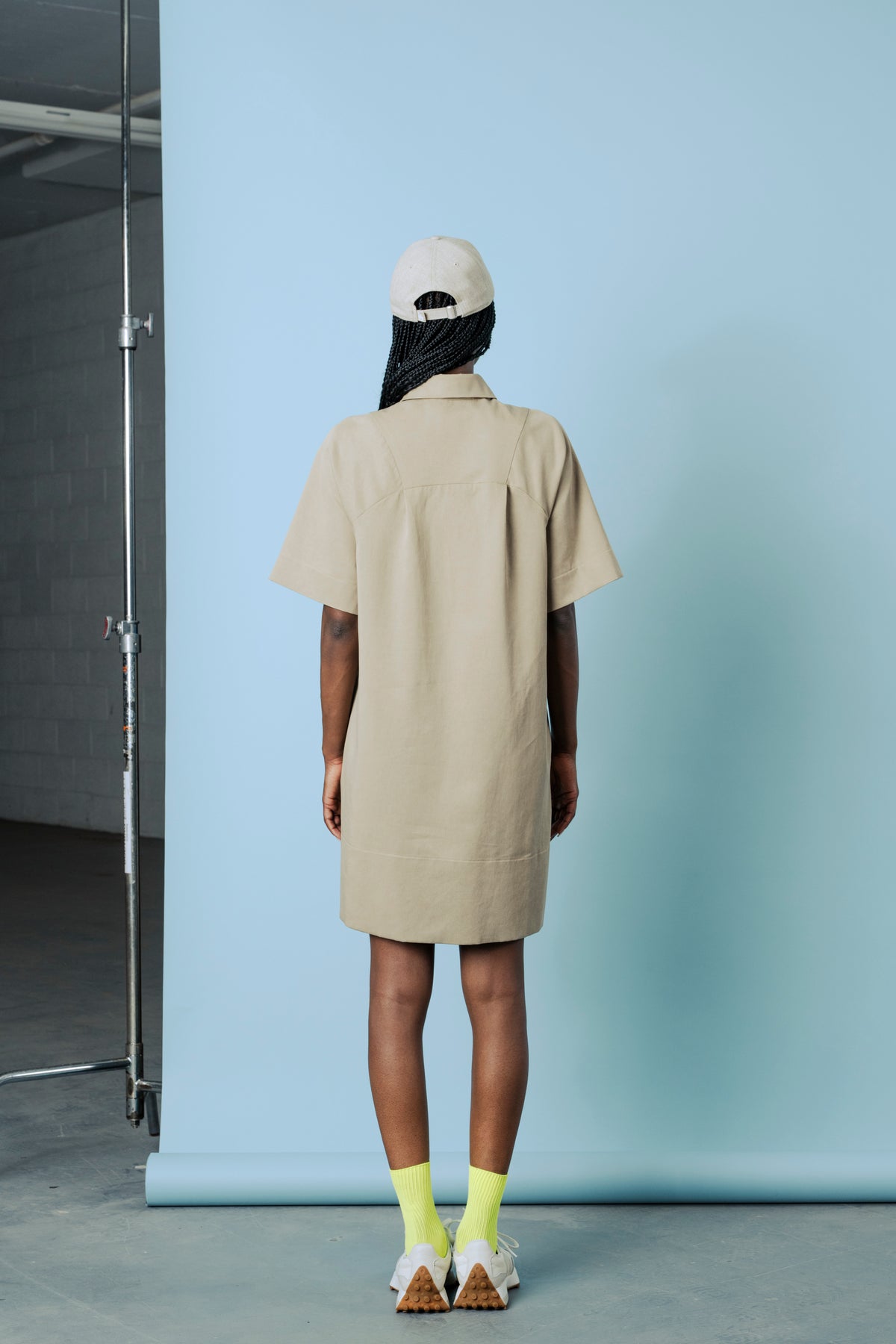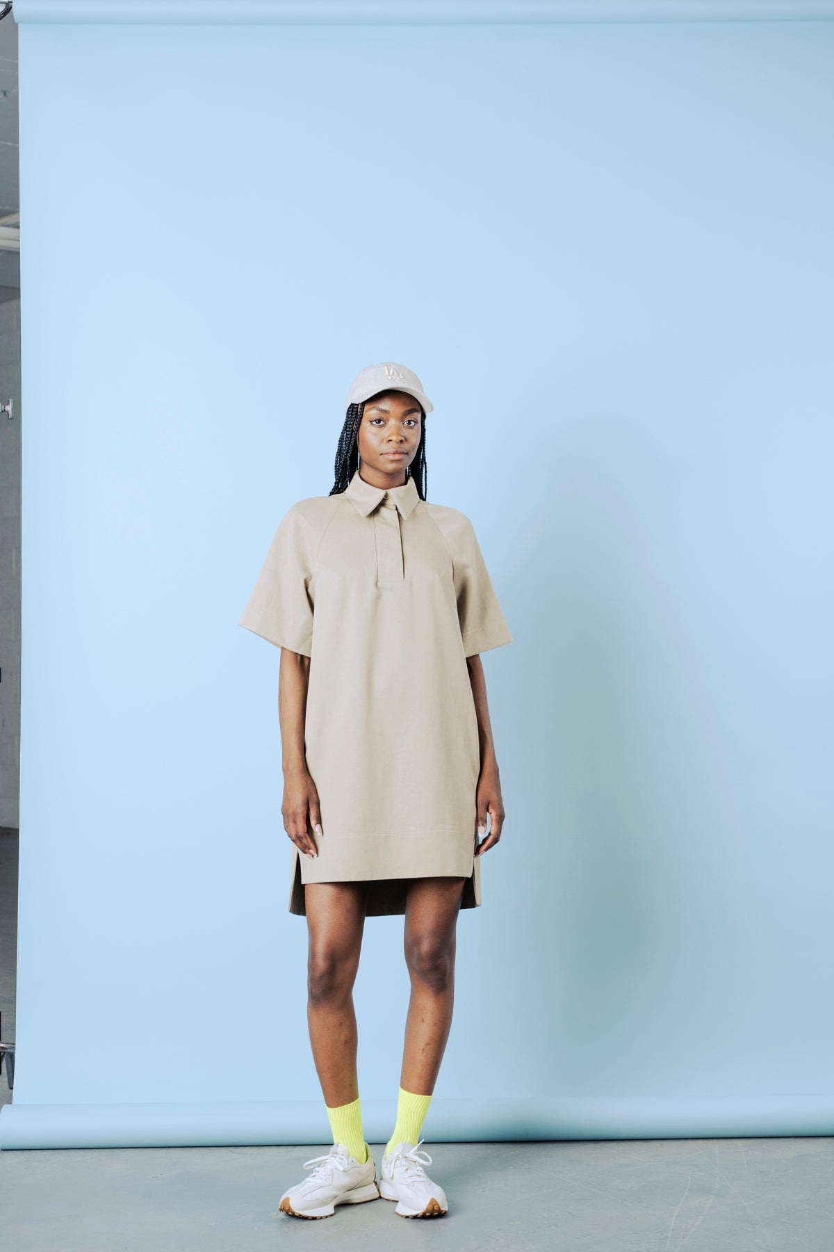 Une robe utilitaire structurée aux lignes épurées et modernes.
