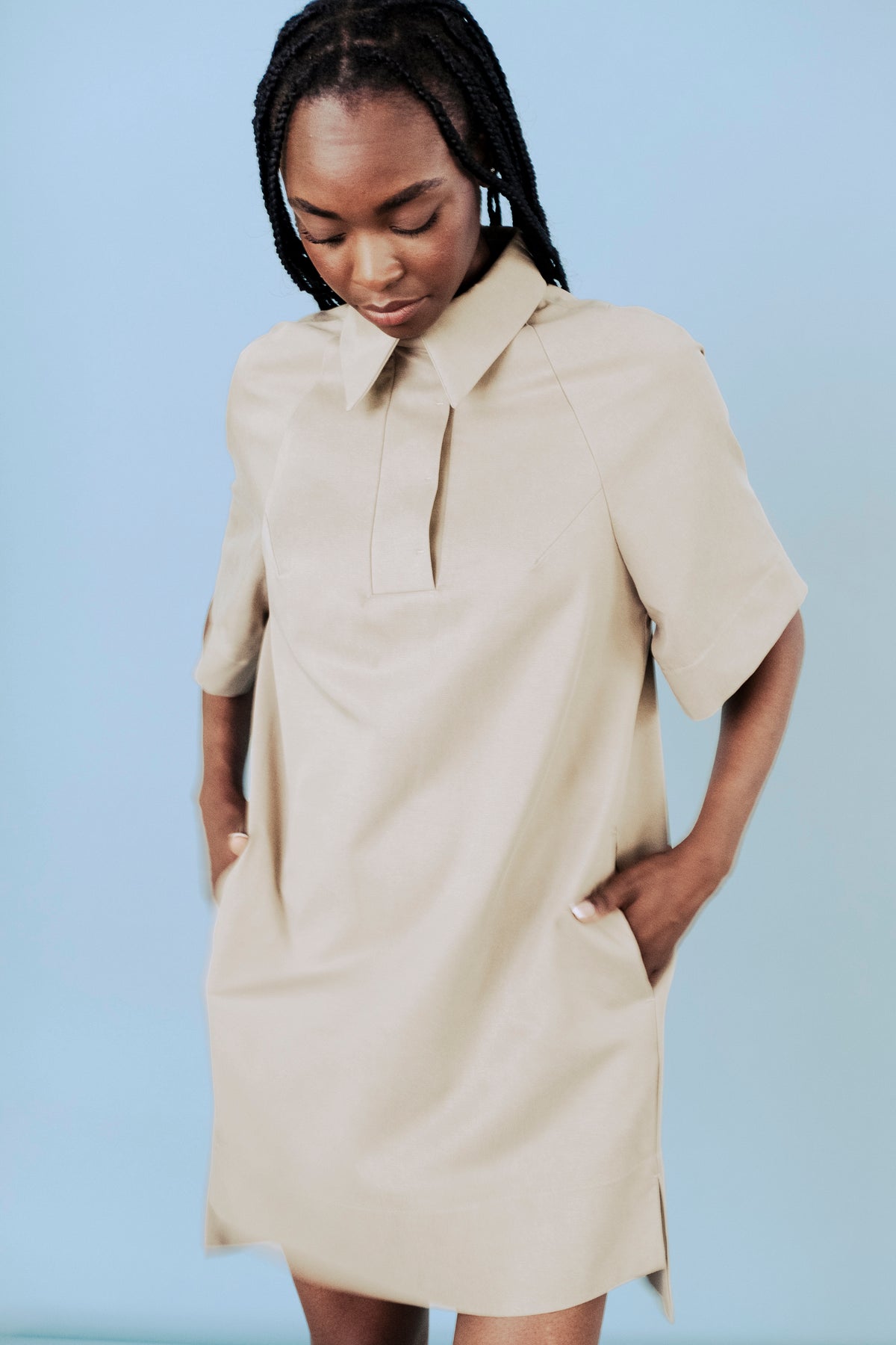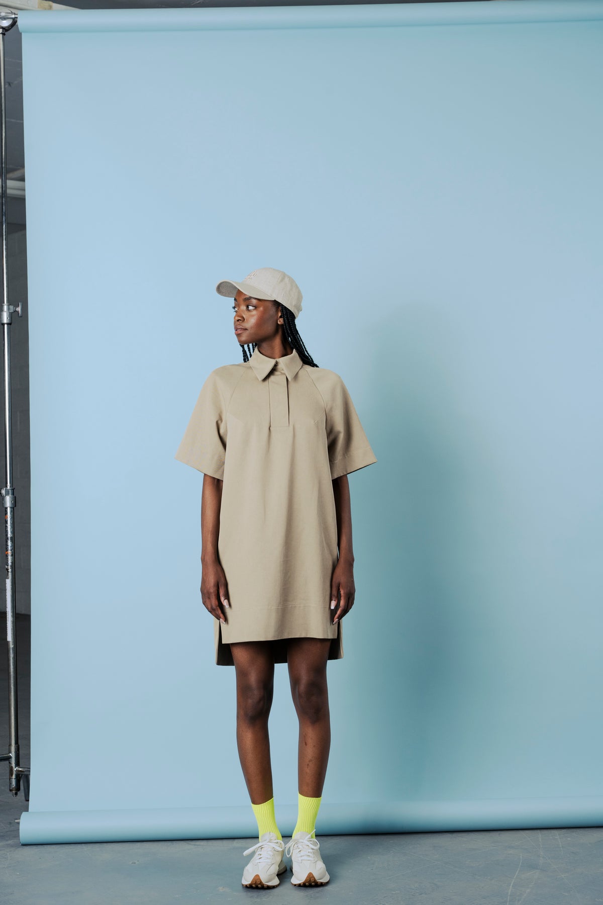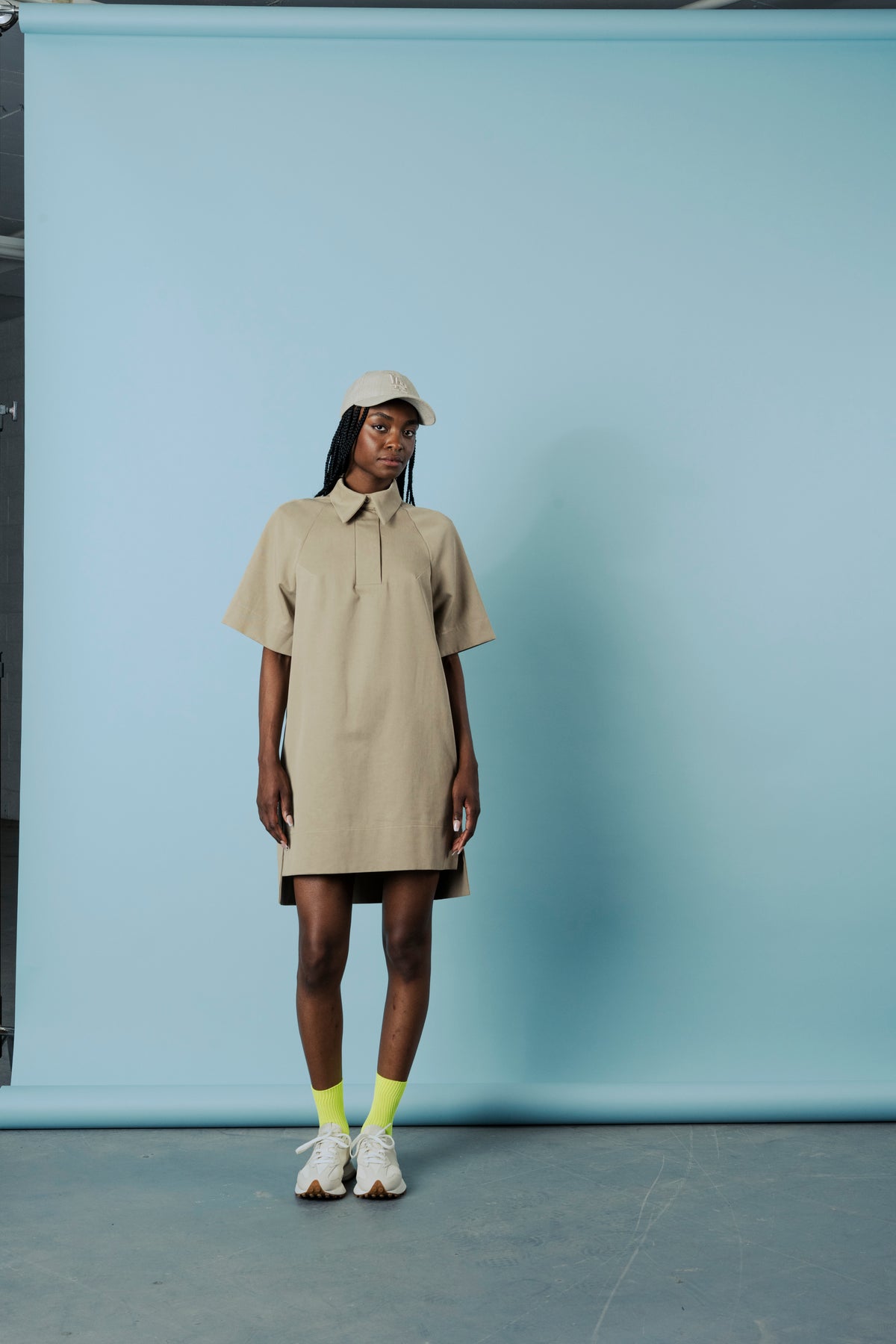 Une robe utilitaire structurée aux lignes épurées et modernes.