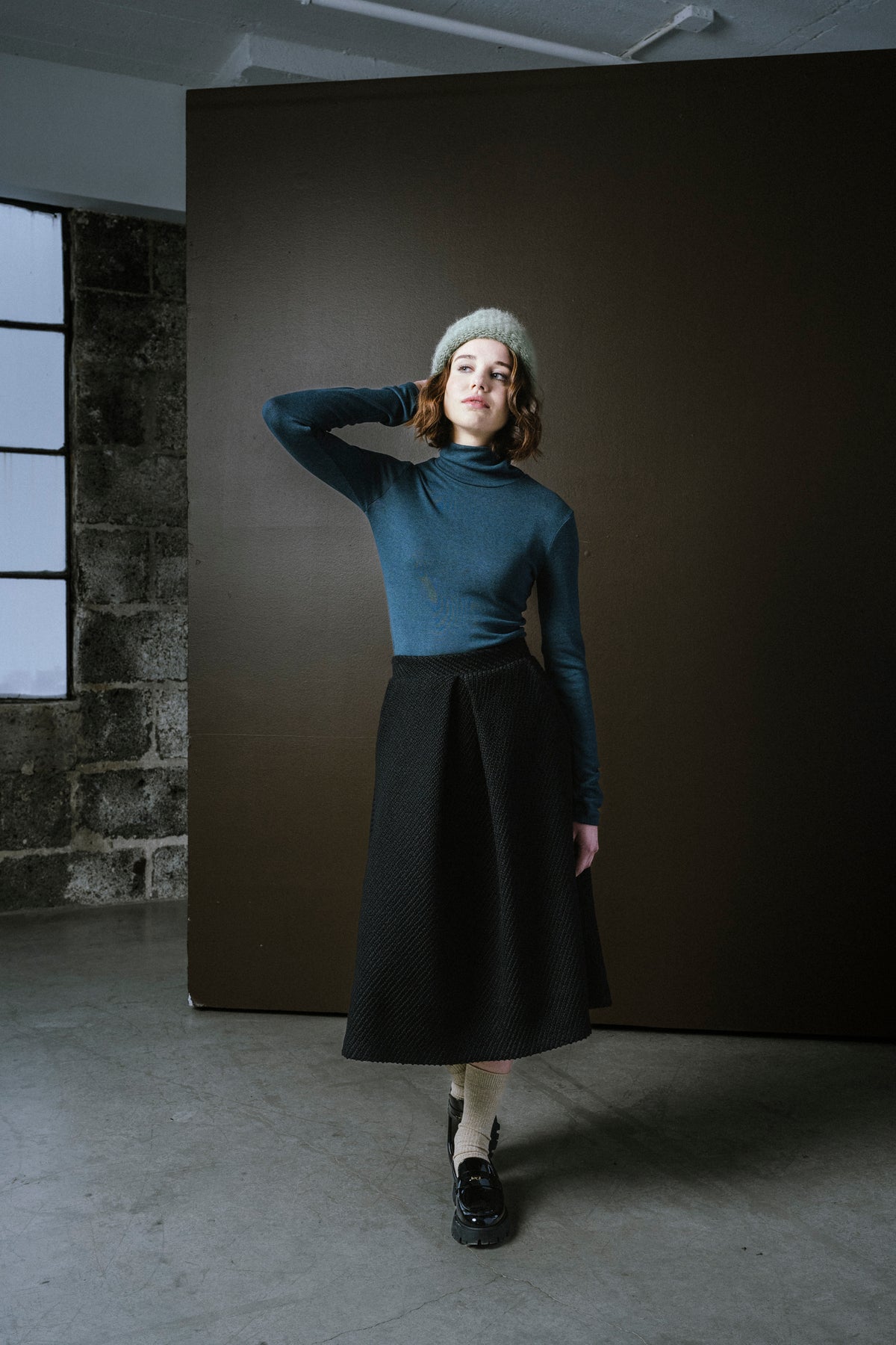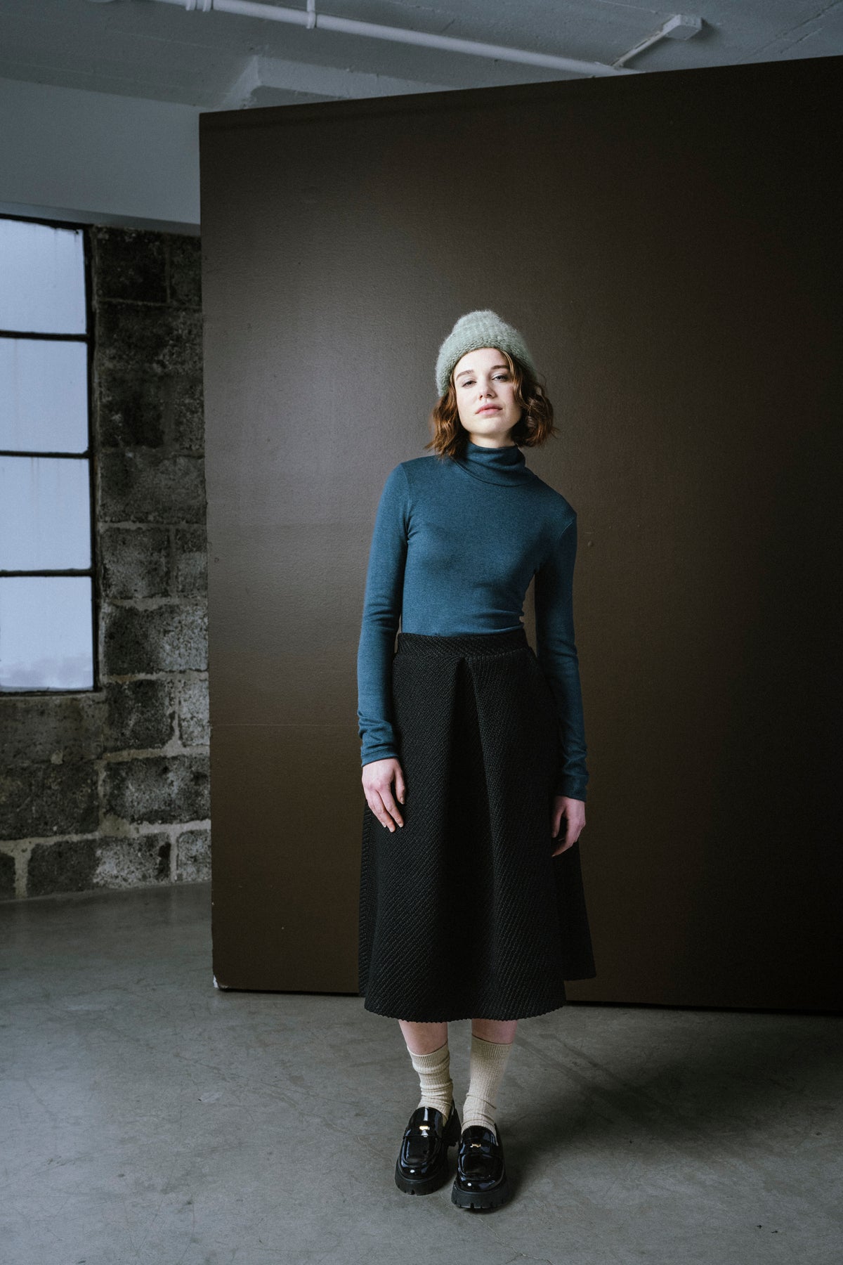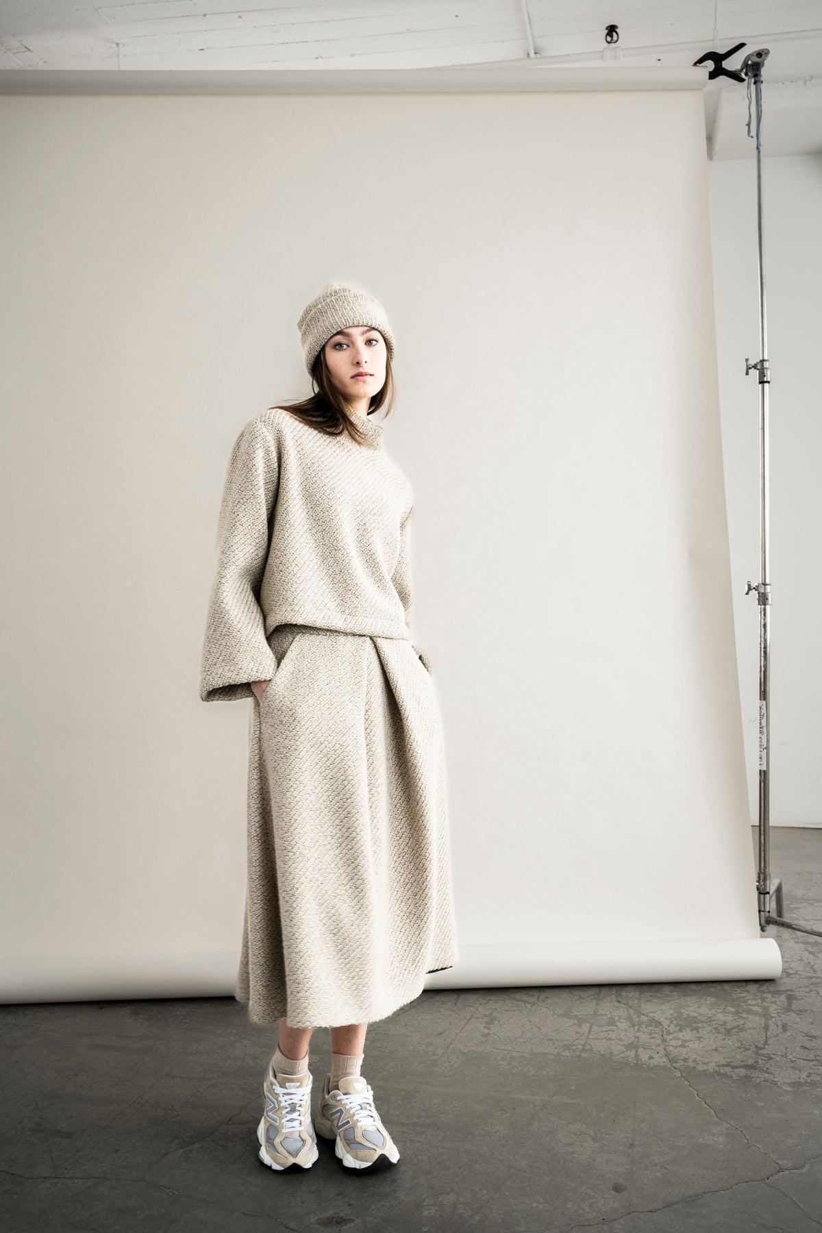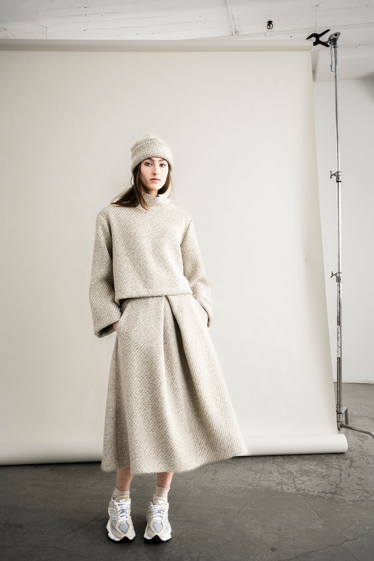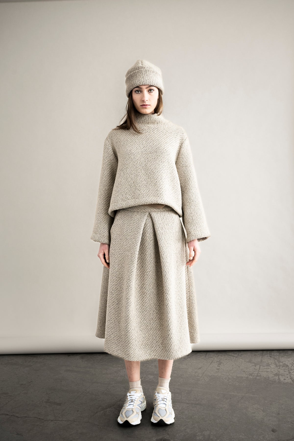 Un essentiel structuré avec une profondeur intemporelle, cette jupe midi en tweed offre une texture saisissante.