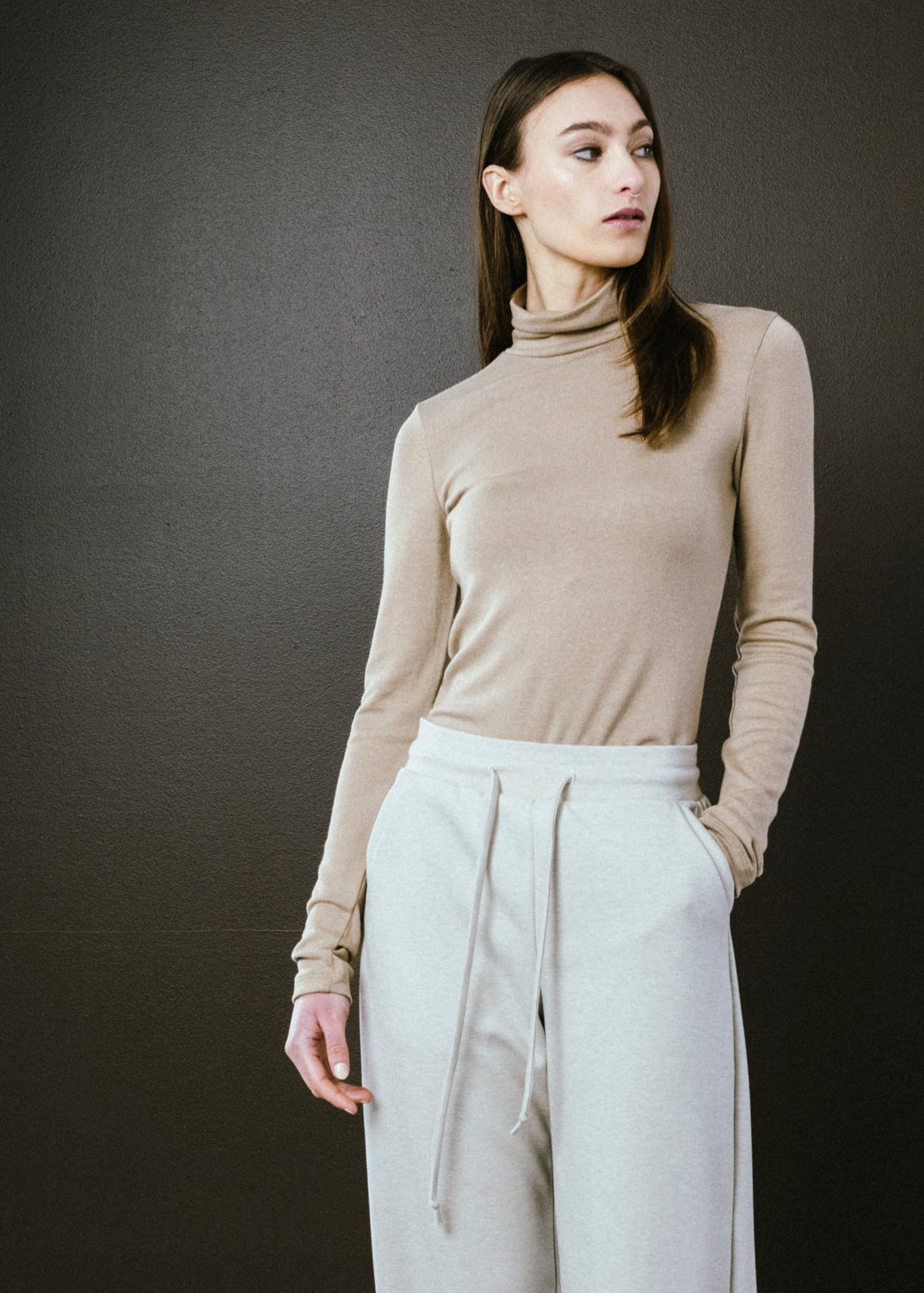 Un basique raffiné et polyvalent, fabriqué localement. Ce haut à col roulé offre une silhouette épurée et élancée, avec une coupe ajustée et confortable.