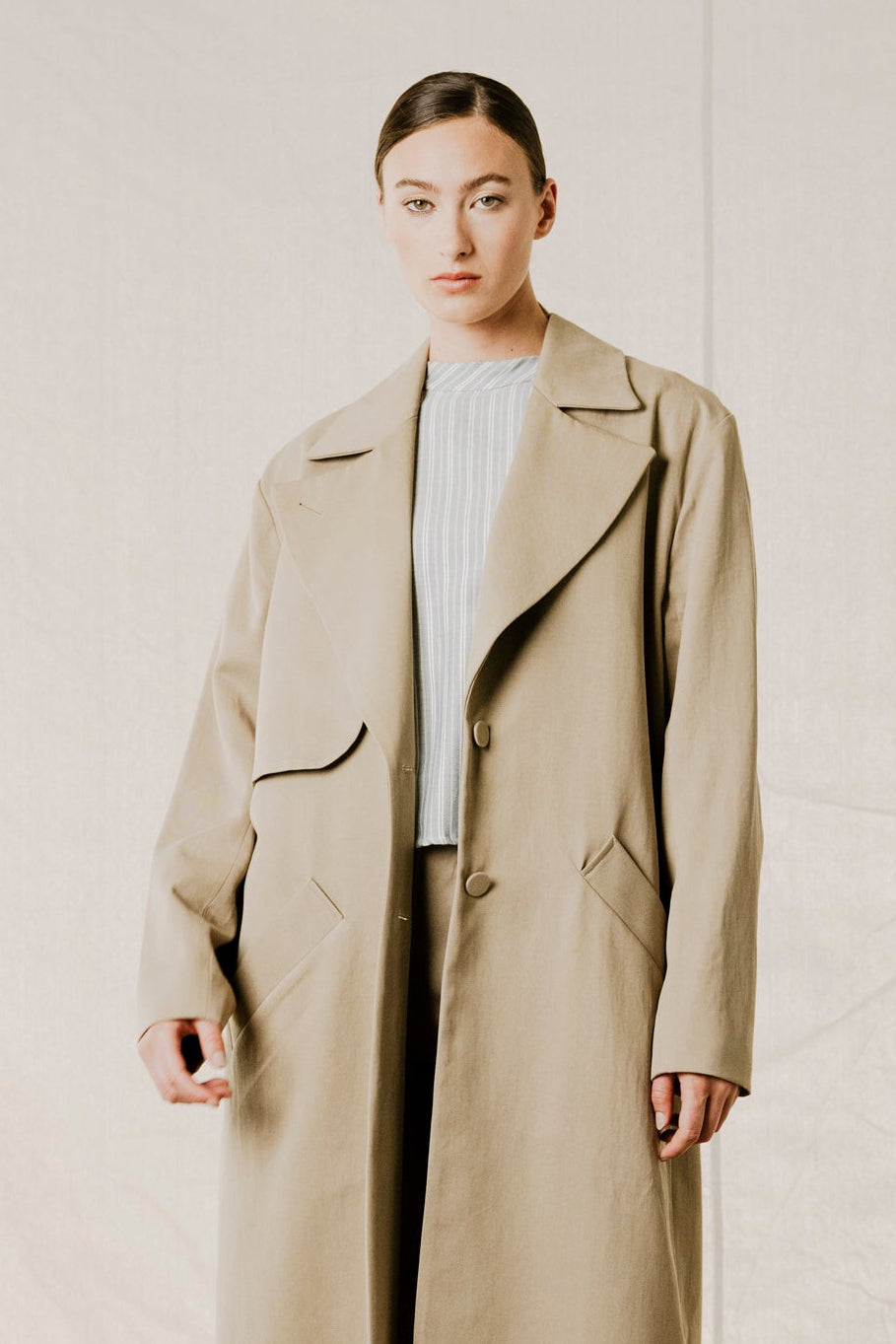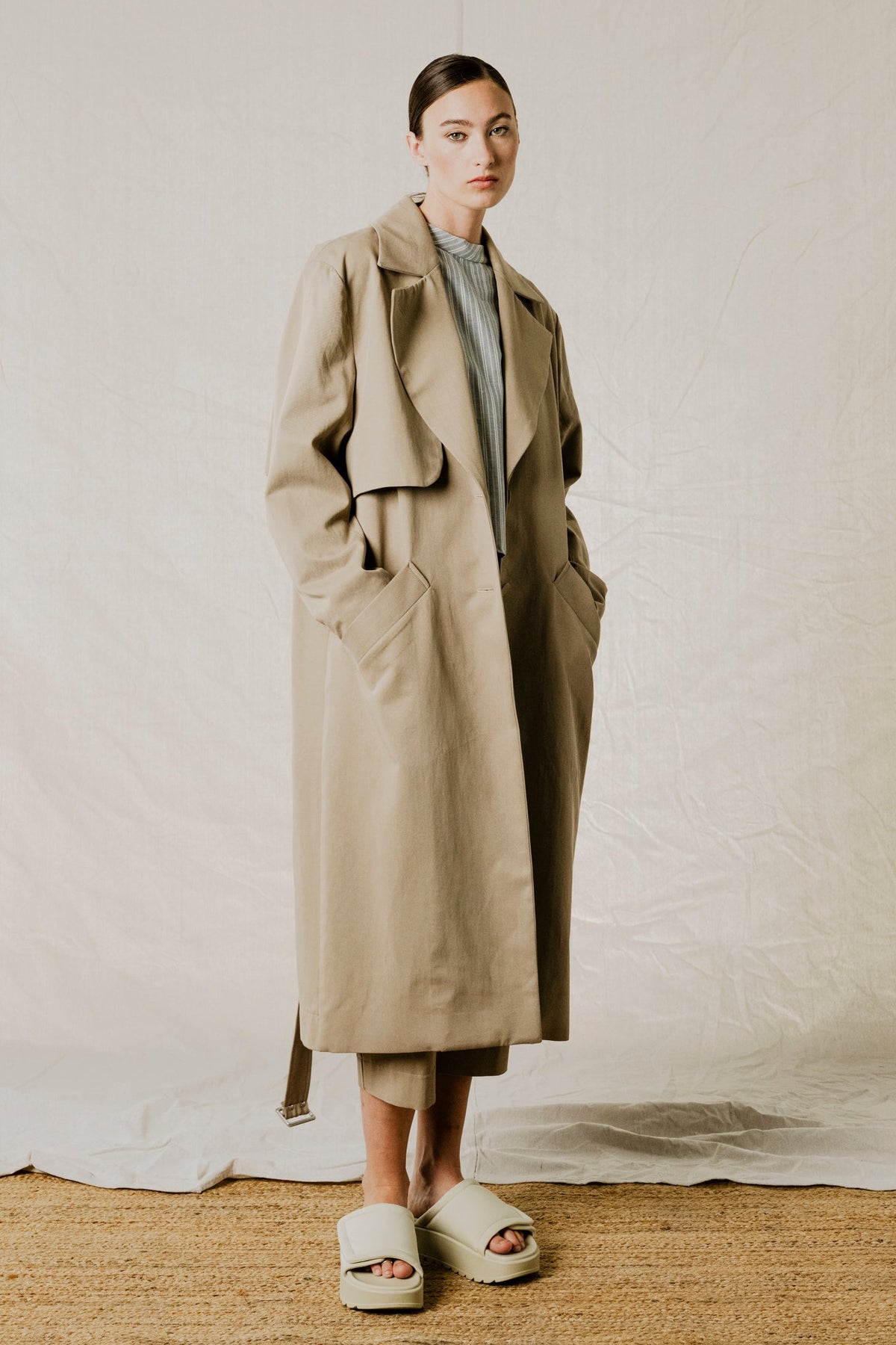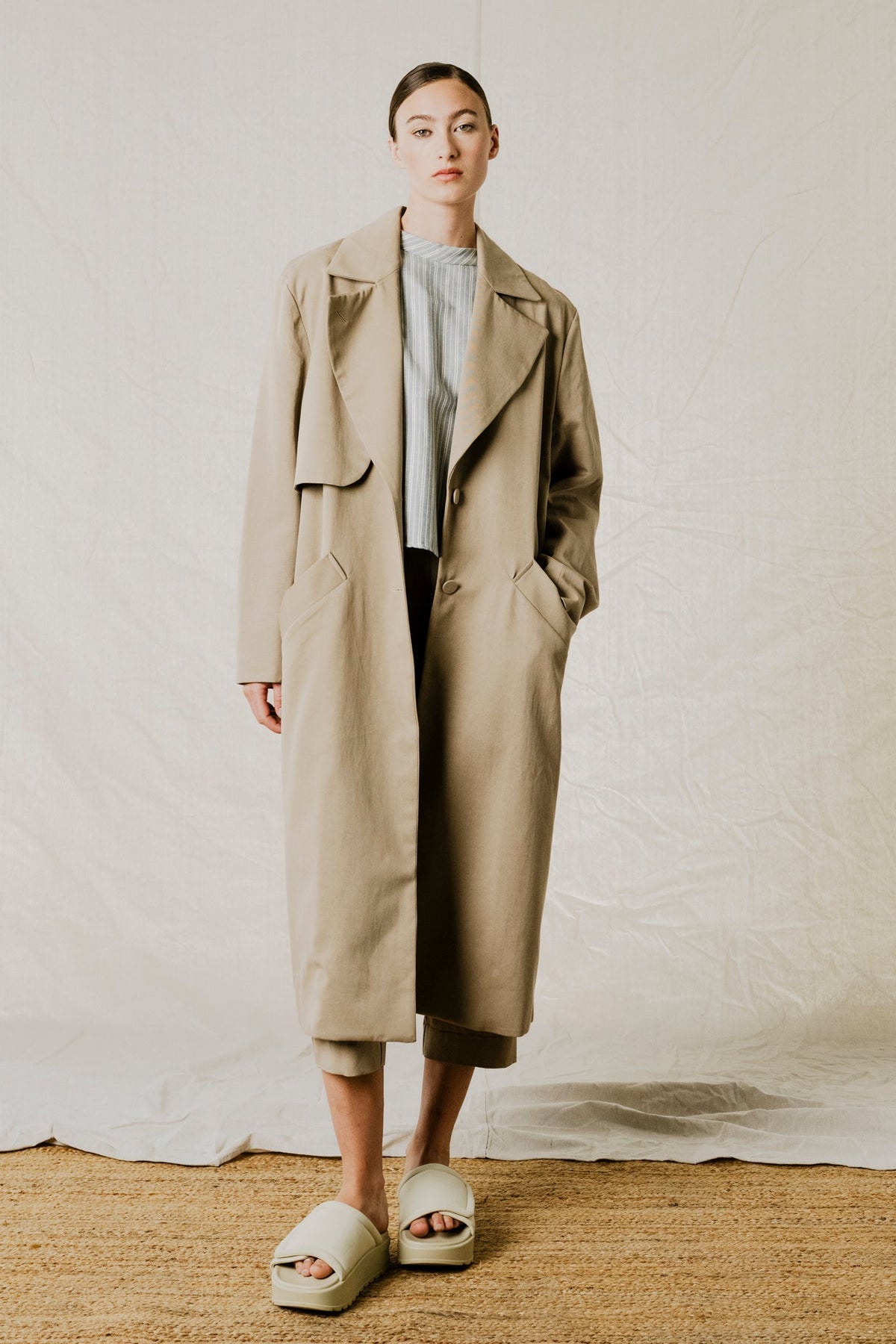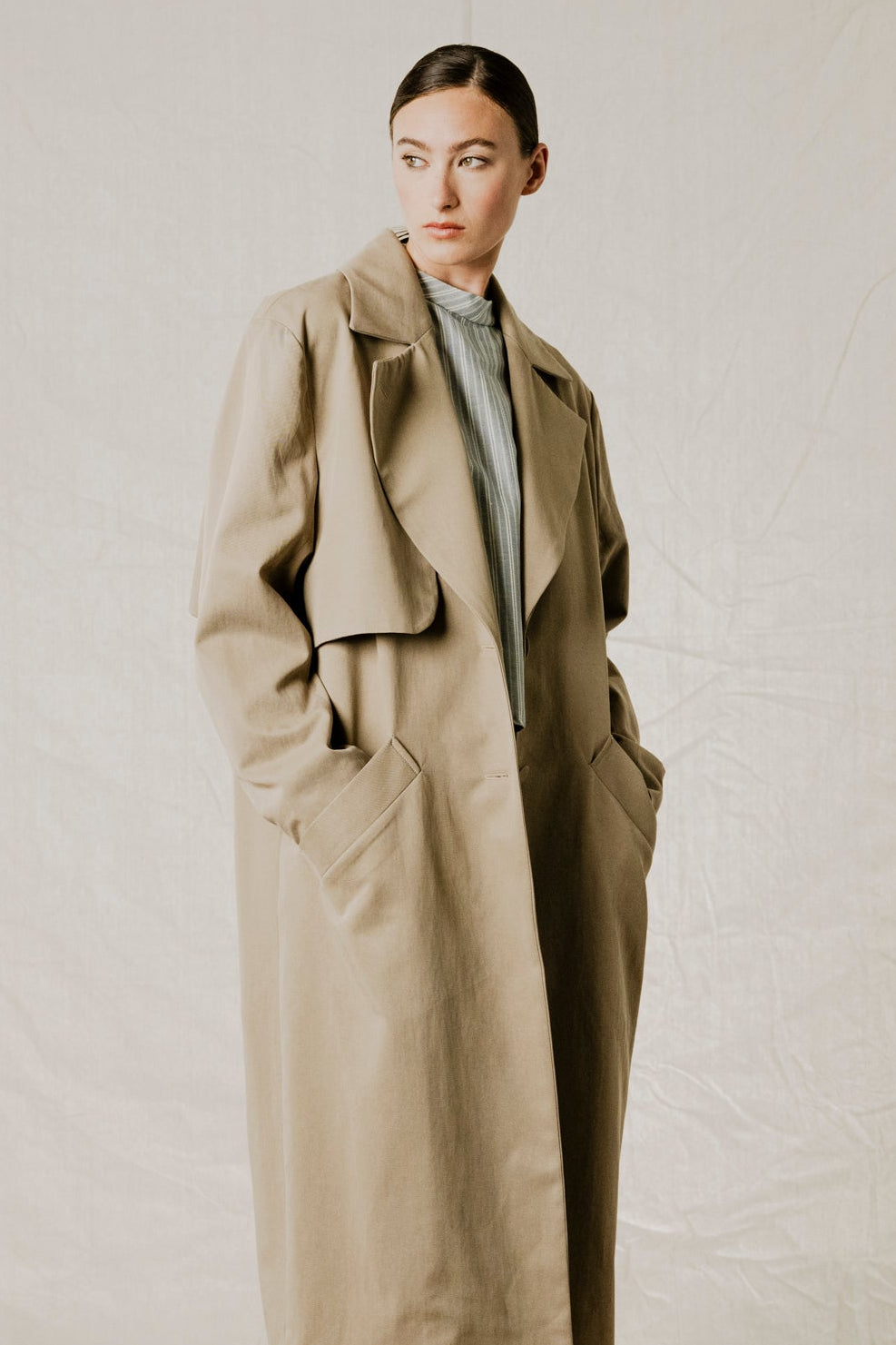 The District Trench is a complex piece, combining material investment, layered construction, and precise finishing. Producing it in limited, confirmed quantities allows the design to be executed as intended: without compromise in fabric choice, cut, or construction.
